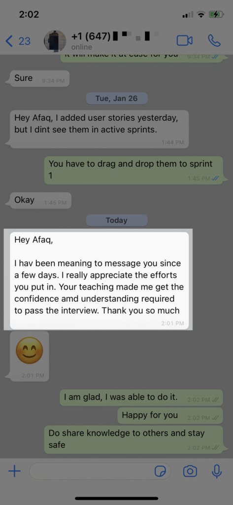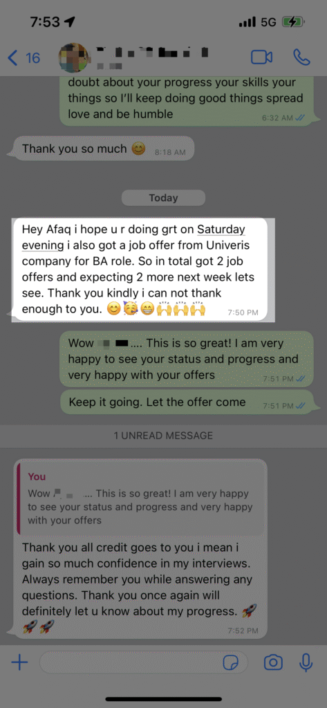 You’ll have direct access to Afaq via WhatsApp for personalized guidance on coursework, mock interviews, resume tweaks, or job strategies. It’s like having a mentor in your pocket.