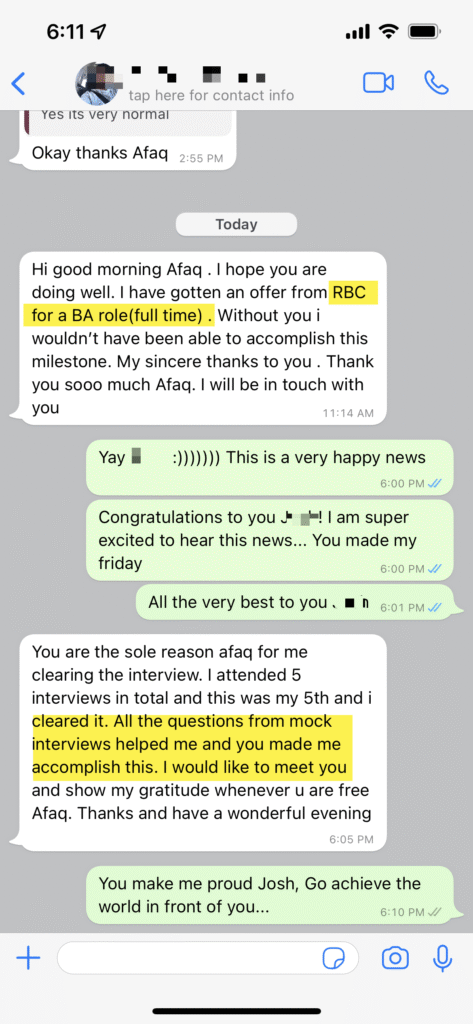 I don’t offer direct job placement, but I provide comprehensive support to make you job-ready! You’ll get 1:1 mock interviews (worth $60 each) with a 500+ question bank, professional resume and LinkedIn reviews, and tailored job market strategies for North American BA roles. I work with genuine professionals to craft authentic profiles that make lasting impressions—no fake interviews, resumes, or profiles.